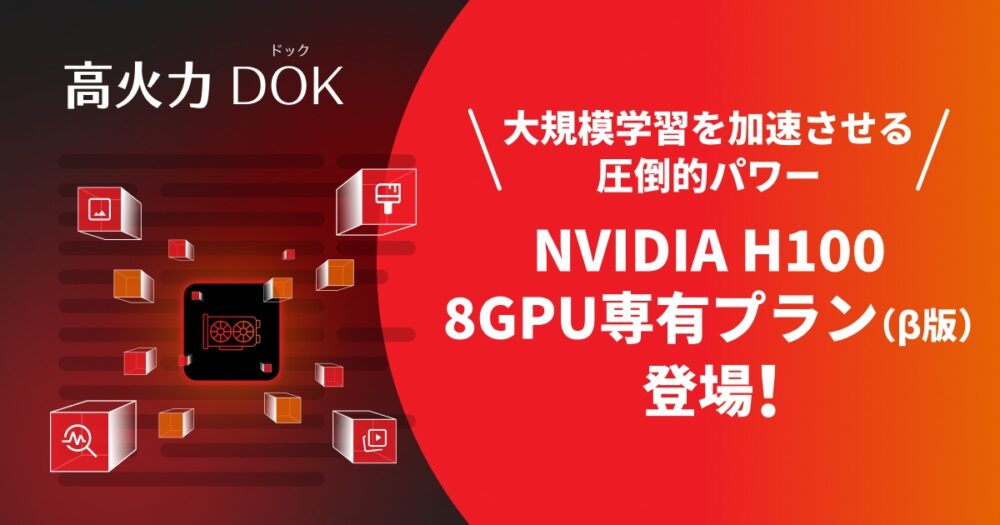 さくらインターネットは、コンテナー型GPU(画像処理半導体)クラウドサービス「高火力 DOK」で、新プラン「NVIDIA H100 8GPU 専有プラン(β版)」の提供を開始した。大規模言語モデル(LLM)や画像生成などの開発が進む中、複数GPUを組み合わせた処理や大容量の一時領域を確保できる環境への需要増に対応する。