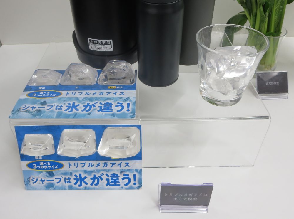 製氷機能も充実させた。水筒の大型化に伴い従来の標準、大の2サイズに加え、新たに特大サイズの氷を作れる「トリプルメガアイス」機能を搭載。本体とアプリでそれぞれ設定したサイズを交互に製氷する「サイズミックス製氷」も実現した。