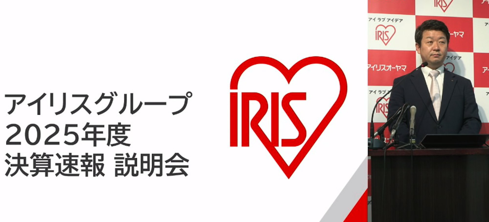 アイリス単体の25年度売上高は6.1%増の2458億円で、経常利益は56.3%増の200億円となった。経常利益率は8.1%。26年度は10.9%増の売り上げ2727億円を目指す。