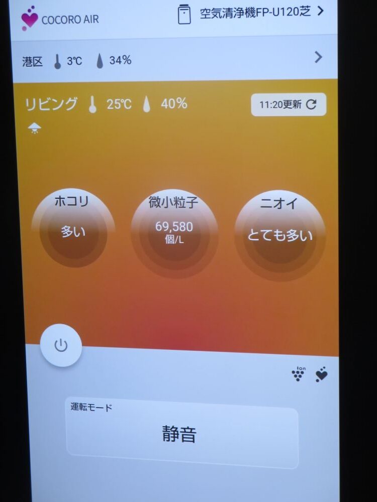 新製品は、本体内蔵のホコリセンサーで空気の状況を検知する。独自のアルゴリズムをかけ合わせることで、1µm相当の粒子数を算出。AIoTクラウドサービス「COCORO AIR」を通じ、数値で清浄効果を知らせる。U120は、本体モニターでも空気環境の変化が確認可能だ。