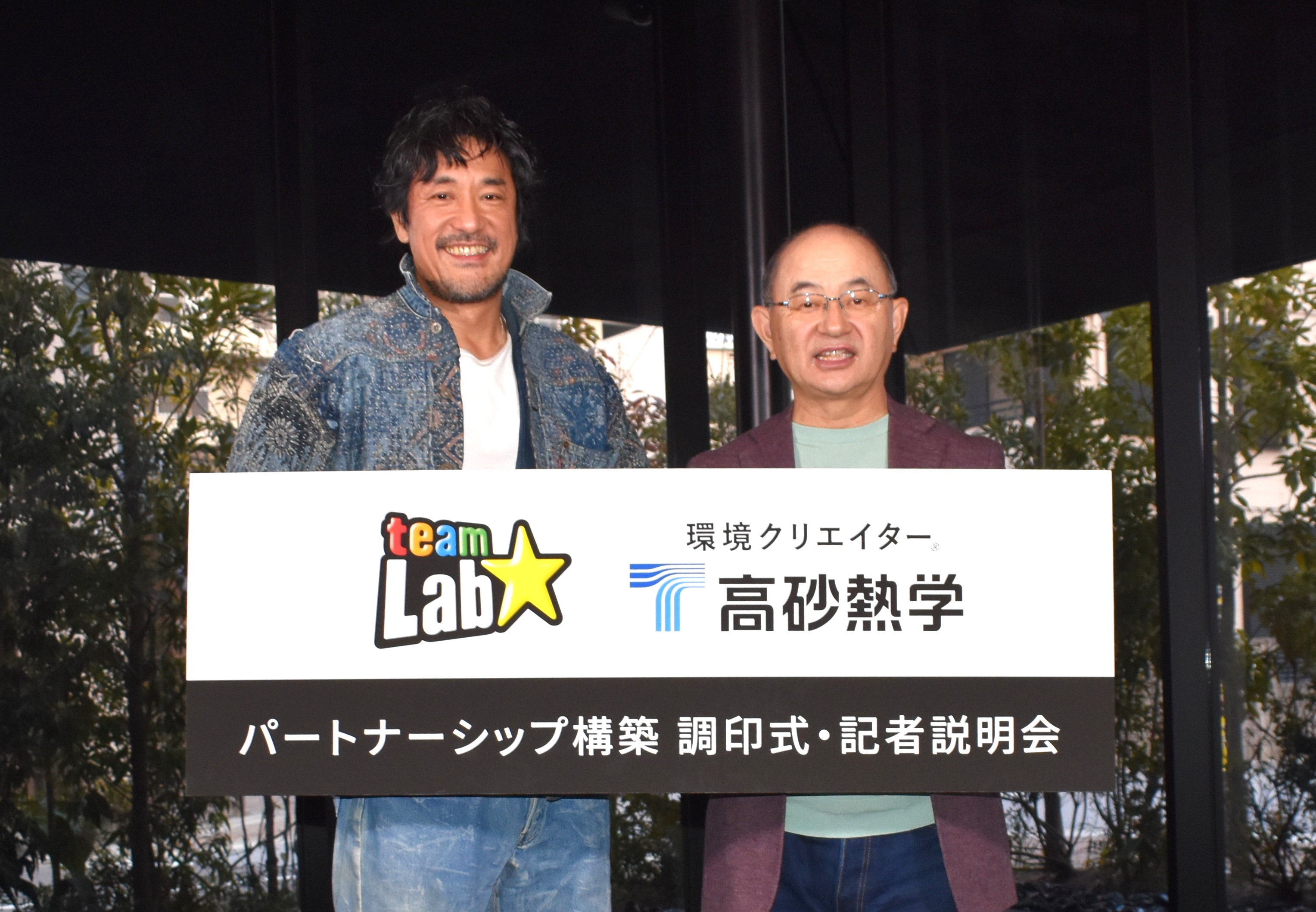 パートナーシップを構築したチームラボの猪子代表(左)と高砂熱学工業の小島社長(右)