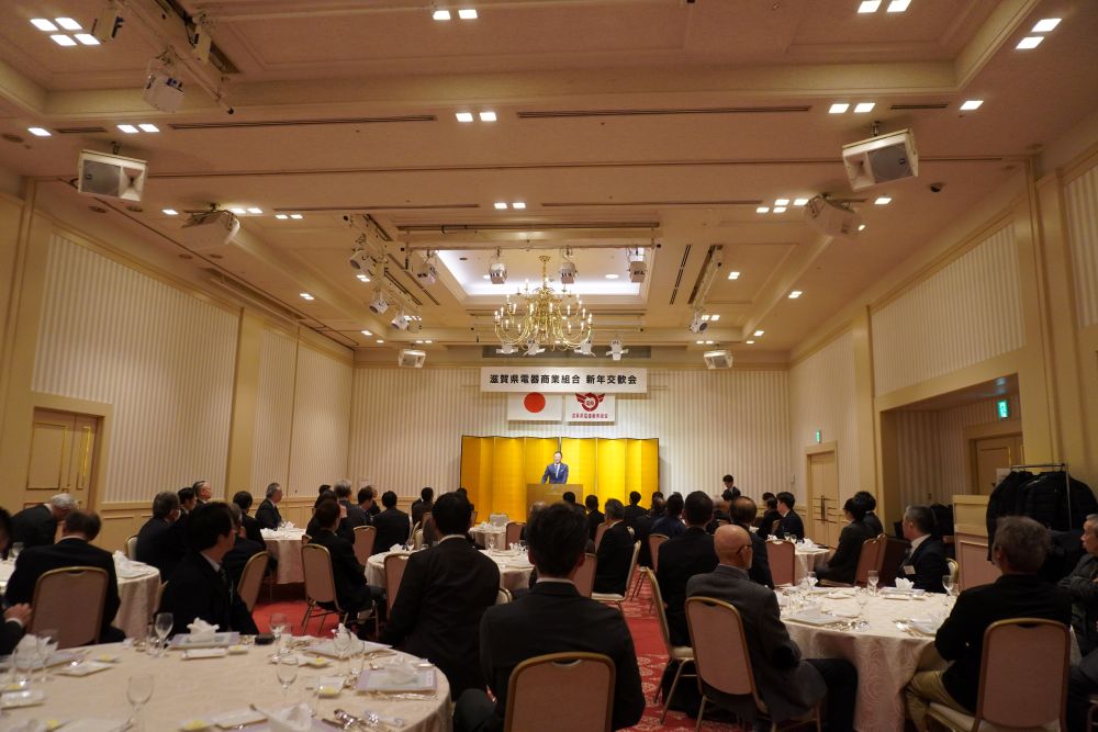 滋賀県電器商業組合(坂口昌弘理事長)は、ホテルボストンプラザ草津(滋賀県草津市)で新年交歓会を開催した。組合員や来賓ら約60人が参加し、新年の門出を祝った。