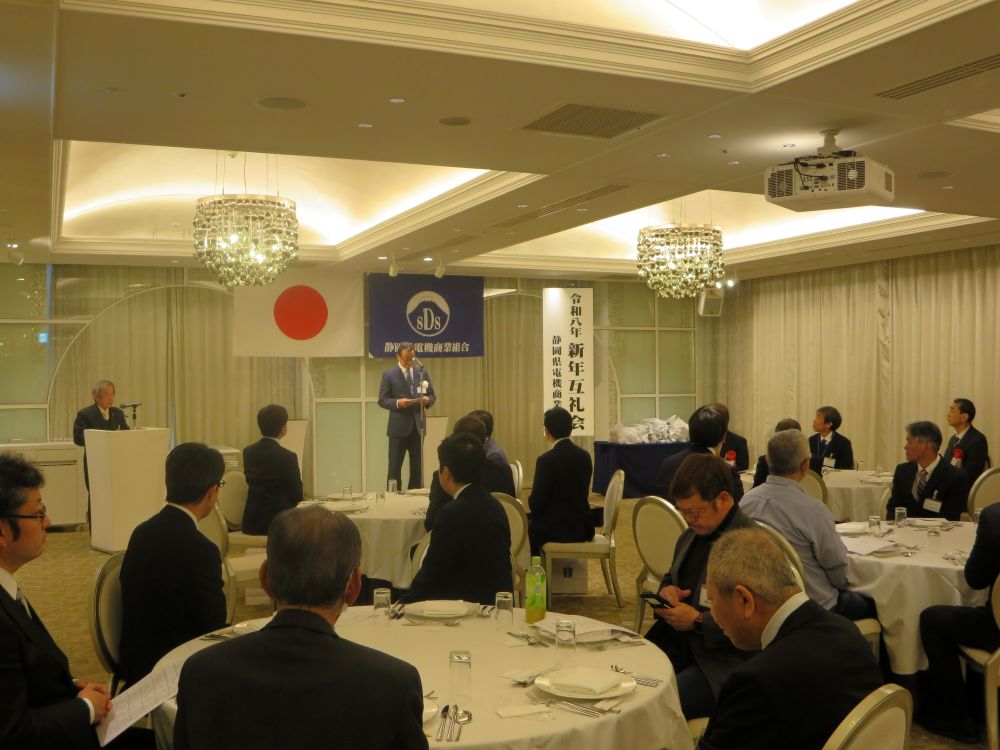 静岡県電機商業組合(溝下正美理事長)は21日、グランディエール ブケトーカイ コスモス(静岡市葵区)で「新年互例会」を開催した。組合員をはじめ、メーカー販売会社や業界団体などの関係者約40人が参加した。