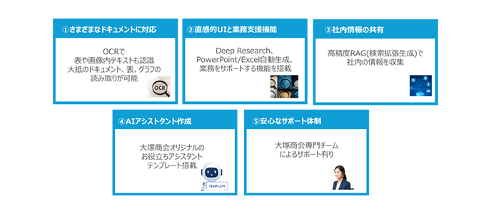 大塚商会の専門チームによるサポート体制もあり、導入から運用までの各フェーズでトータルで支援する。教育、導入支援、伴走支援といった生成AI導入関連サービスも別途提供し、併用により効果的な活用を促す。