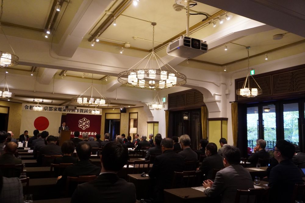 京都府電機商業組合(河村泰三理事長)は、フォーチュンガーデン京都(京都市中京区)で「京都家電業界新年賀詞交歓会」を開催した。組合員や来賓ら約50人が参加し、一年の飛躍を誓った。