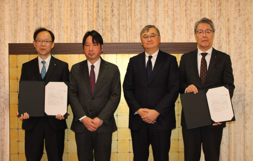 左から佐藤大分県知事、林JX金属社長、安田豊JX金属製錬社長、佐藤耕三大分副市長(出所=JX金属)