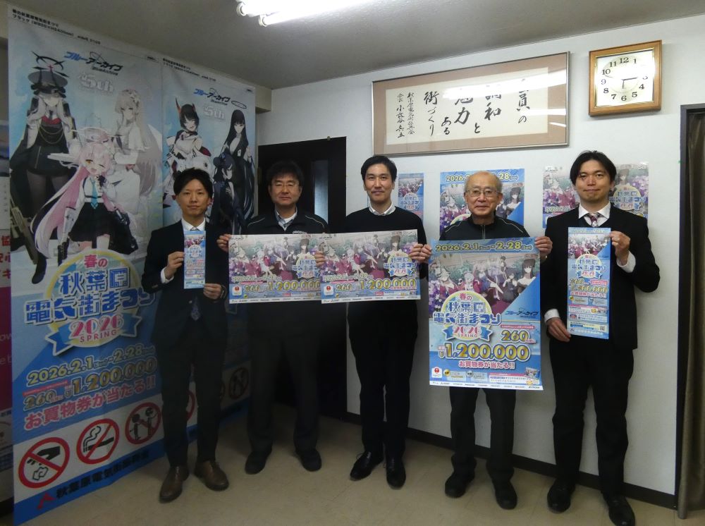 秋葉原電気街振興会(小野一志会長)は、2月1日~28日まで「春の秋葉原電気街まつり2026」を開催する。今回は、X(旧ツイッター)のフォロワー数が134万人、公式Youtubeが82万人で、2月4日に5周年を迎えるスマートフォン向けゲームアプリ「ブルーアーカイブ」とタイアップし、秋葉原での買い物促進を図る。