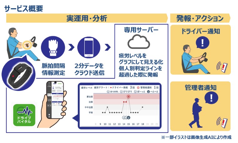 ロジスティードは、グループ会社のロジスティードソリューションズがバンド型デバイスでドライバーの体調を管理し、疲労レベルに応じた注意喚起を行う新サービス「ドライブバイタル」を提供開始したと発表した。