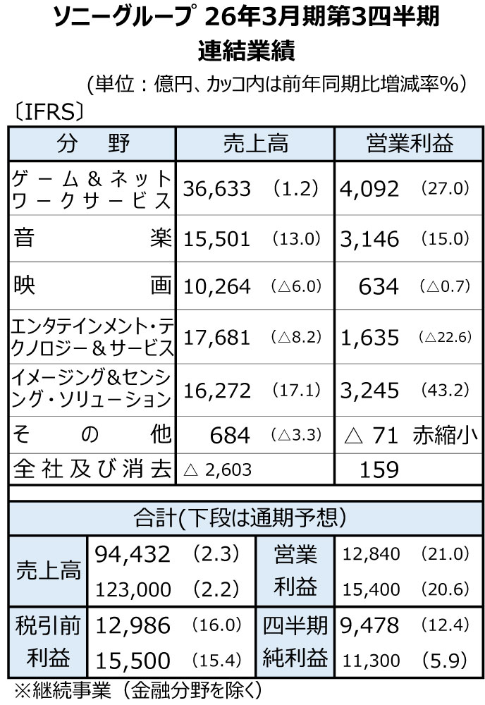 2026.02.05 ソニーG、26年3月期営業・純利益が過去最高見通し 今期3度目の上方修正