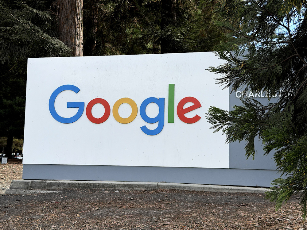 米グーグル本社のロゴ=2025年9月、カリフォルニア州(EPA時事)