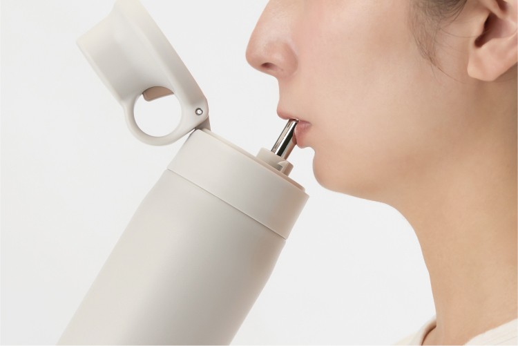 飲み口に採用するステンレス製ストローは、汚れやにおいが残りにくく衛生的で使いやすい。ボトルを大きく傾ける必要がなく、楽に飲むことができる。