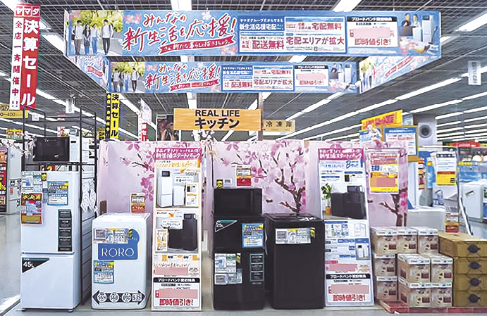 ヤマダデンキLABI1ライフセレクトなんば(大阪市浪速区)は、春から1人暮らしを始める顧客に向けて、冷蔵庫や洗濯機などのセットと合わせて、小物家電や家具の提案を強化している。プライベートブランド(PB)商品やリユース家電も組み合わせることで、値頃感がありながらも、顧客の希望に沿った提案を進めていく。