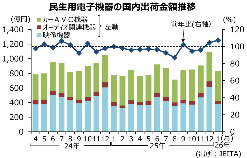 2026.02.24 AV機器、2カ月連続プラス 1月、7.4%増の836億円 JEITA