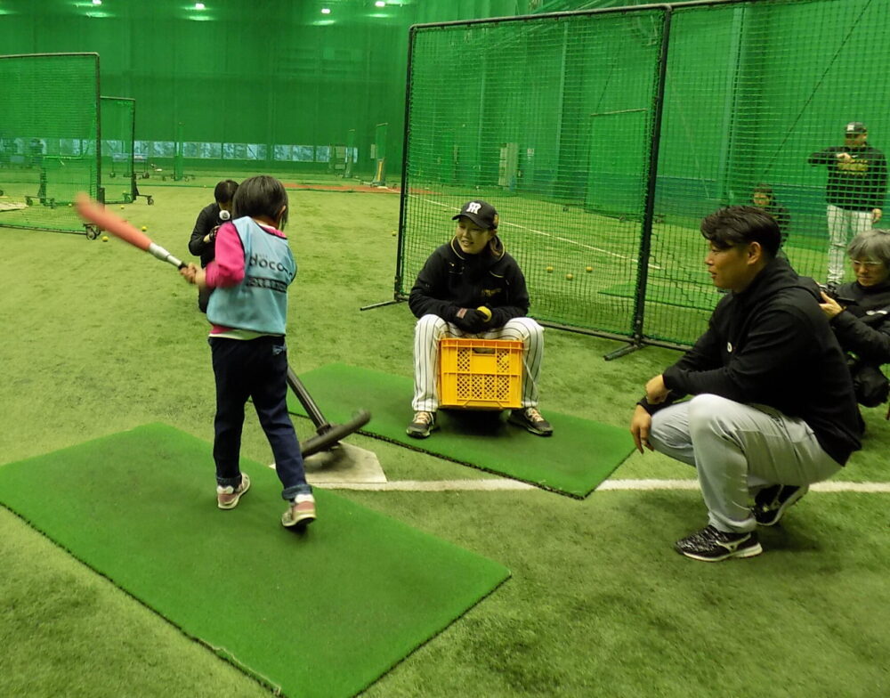 後半は原口氏と秋山氏をゲストに迎え、元プロ野球選手との交流会を実施。野球教室では初心者でも楽しめるゲームやバッティング練習などを行い、野球の魅力をより身近に感じてもらう企画となった。