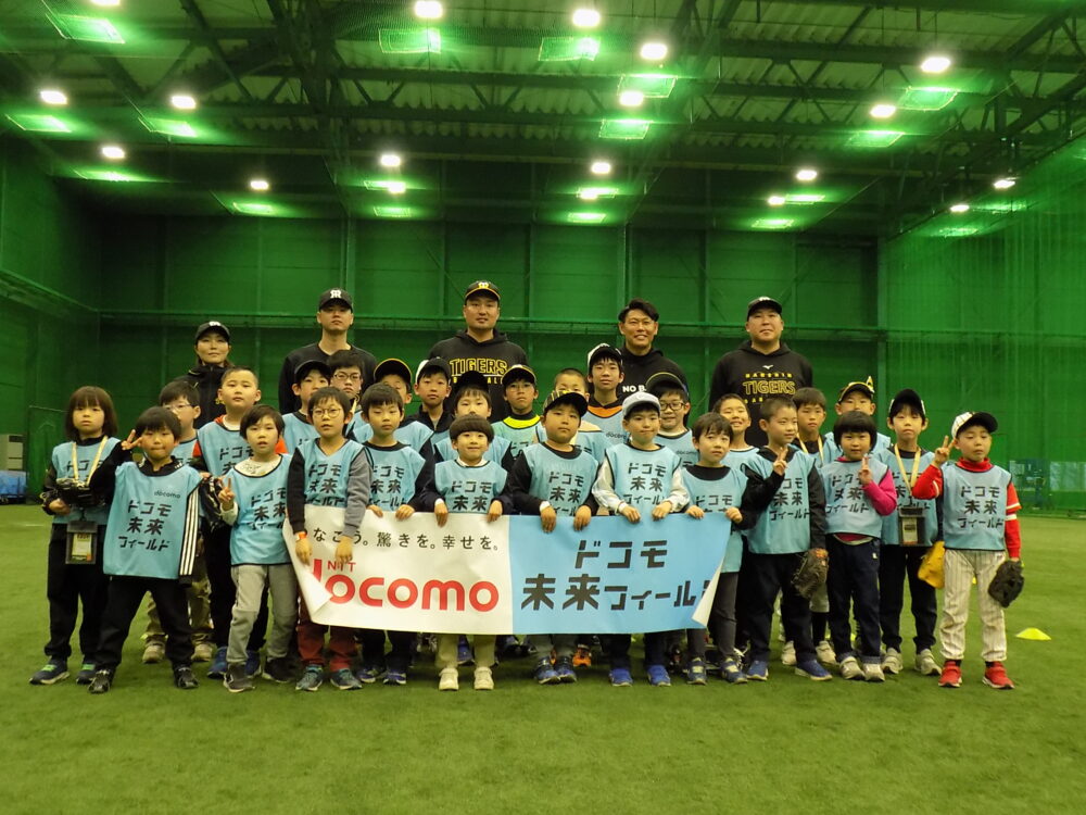 ドコモ未来フィールドは、子どもの夢や未来を応援することを目的とした取り組みで、2023年6月に開始し全国で実施している。阪神タイガースとの企画は今回で2回目。阪神タイガースOBの原口文仁氏、秋山拓巳氏が指導者として参加し、野球の基礎を丁寧に教えた。