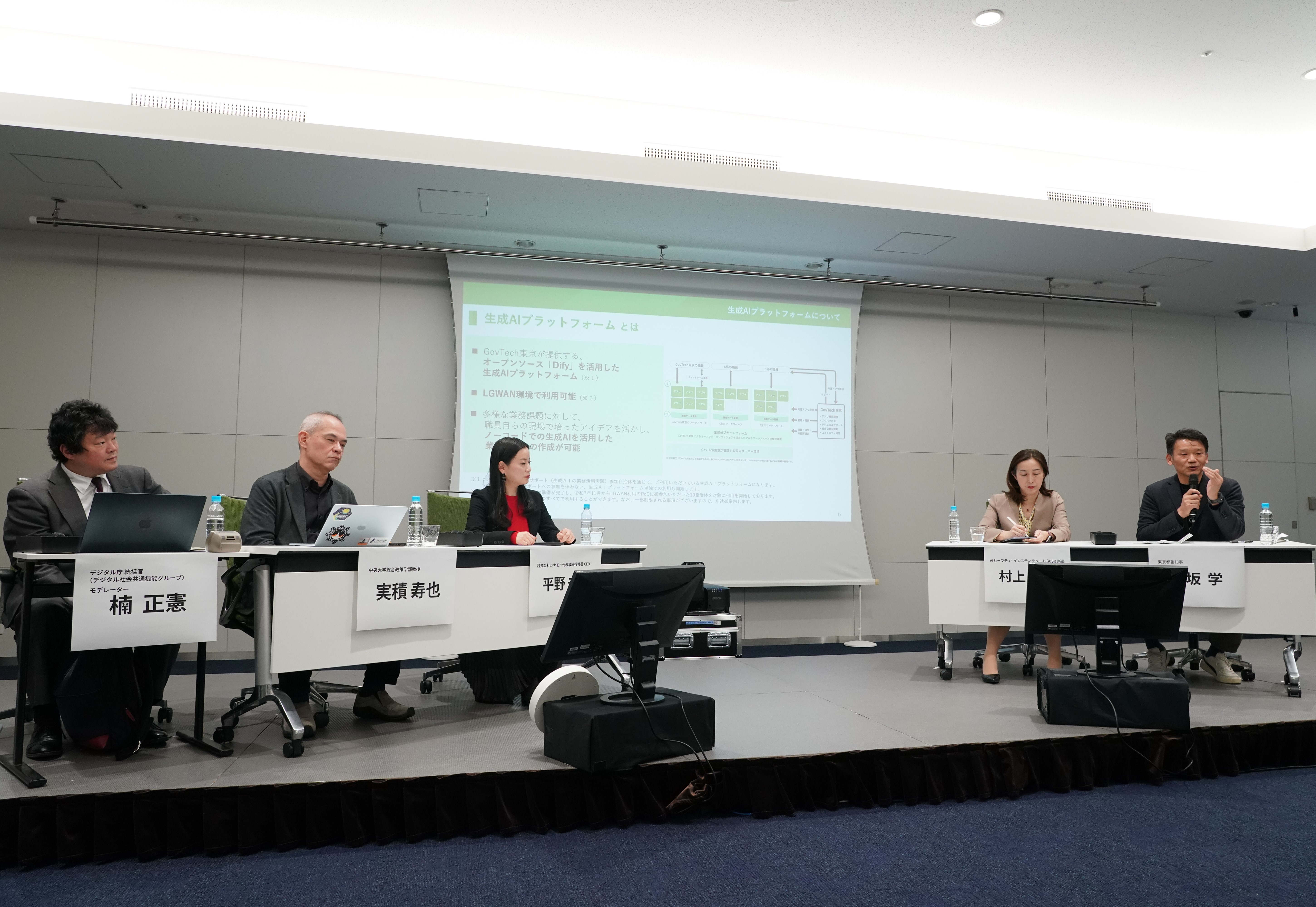 全府省庁の約18万人の政府職員を対象に、生成AI(人工知能)の利用環境を試験的に導入する大規模な実証事業が5月に始まる。デジタル庁はこれに先立ち、東京都内でフォーラムを開催。AIの安全性を評価する政府機関、AIセーフティ・インスティテュート(AISI)の村上明子所長ら官民の有識者が登壇し、AIと人間の協働のあり方やリスクを巡る議論を深め、「最終的には人間の意思が要となる」との認識を共有した。
