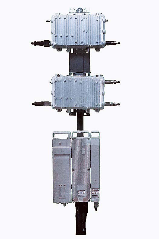 柱上型ミニサブセンターは、高速通信の中継拠点となるサブセンターの建設を不要とするもので、屋外型光増幅器(EDFA)と屋外型ブレードOLT、屋外型ブレード電源で構成される。1人でも持ち運びできるコンパクト設計による施工性の高さのほか、用地確保や建屋建設などで従来数千万円から数億円必要だった費用が数千万円で済むなどコストメリットも大きい。上り下り最大10Gbps対応の通信設備を採用し、リチウムイオン電池搭載で停電時にも電力を供給できる。
