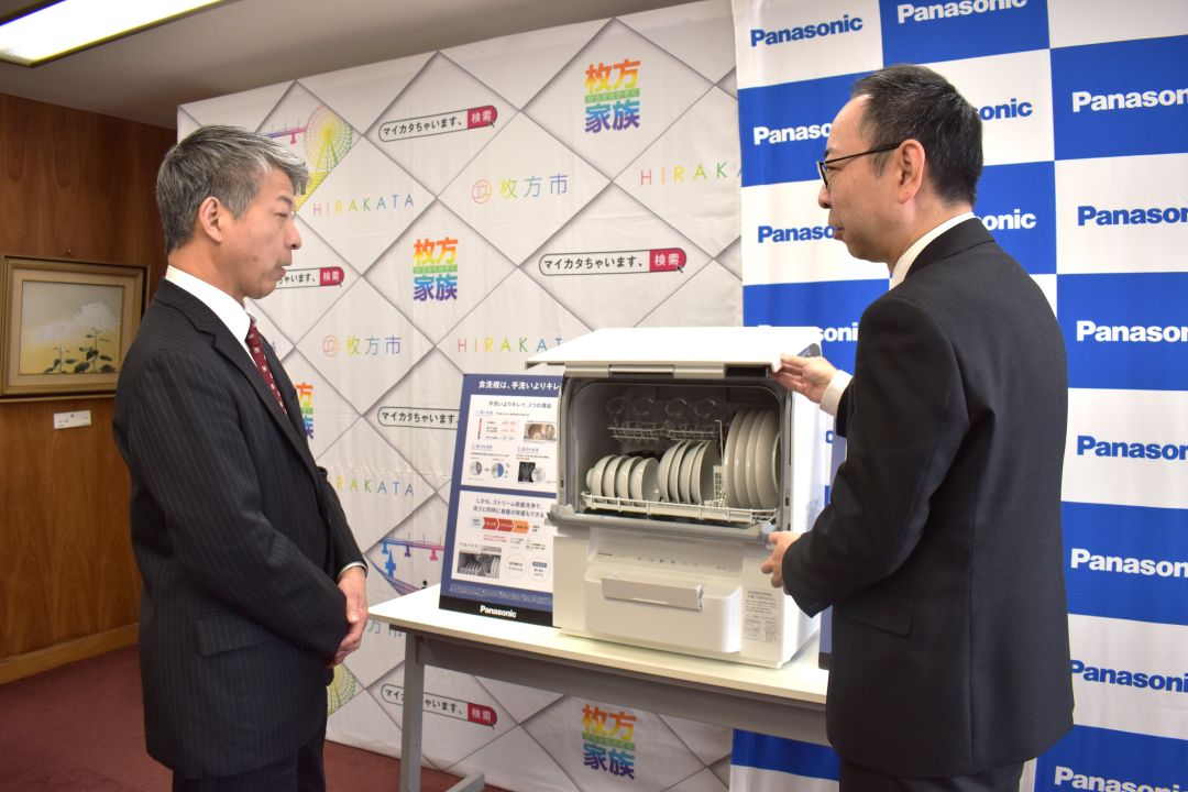 パナソニックの澤近BU長は「(食洗機は)家事負担軽減により豊かな時間を生み出し、高い節水性で無理なく環境貢献できる。また年代を問わず家族の家事シェアを促し、共働き世帯のワークライフバランス向上や子育て世帯の家事軽減に寄与する。今回の実証では市民の皆さまの声を分析して効果を測定し、(枚方市に)次の事業提案へとつなげたい」と語った。