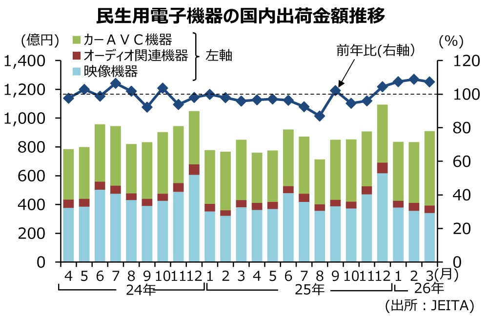 2026.04.20 3月のAV機器出荷、7.3%増の910億円 JEITA