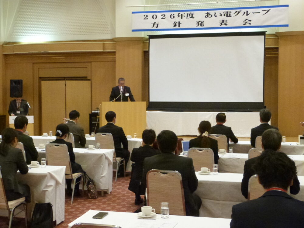 山形県内のパナソニックショップ(PS)で8店が加盟するあい電グループ(本部=山形県酒田市、海野晋本部長)は、寒河江市のホテルで「2026年度あい電グループ方針発表会」を開いた。25年度は、売上高10億4800万円の実績で計画比、前年比ともに達成したことが報告された。年間売上ランキング表彰などが行われたほか、海野本部長が「あい電の挑戦」と題し講演も行った。