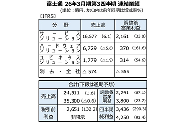 富士通、25年4~12月は最高益更新 サービス成長と採算改善が収益押し上げ、通期業績予想も情報...